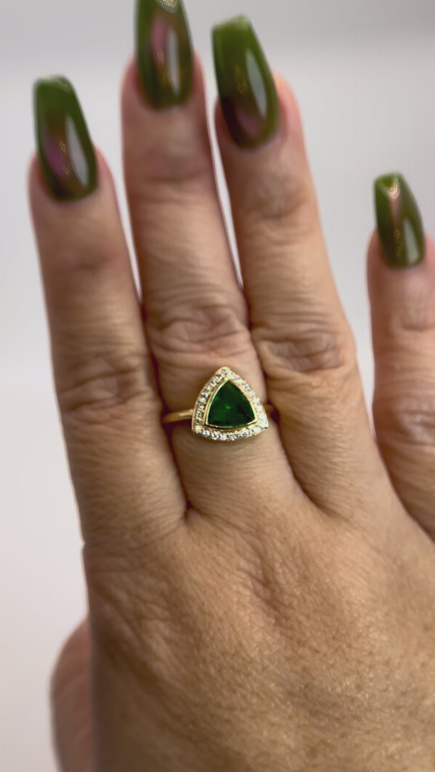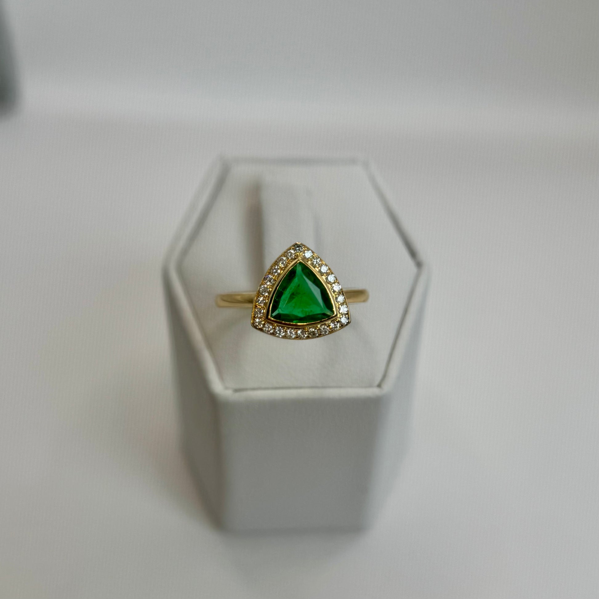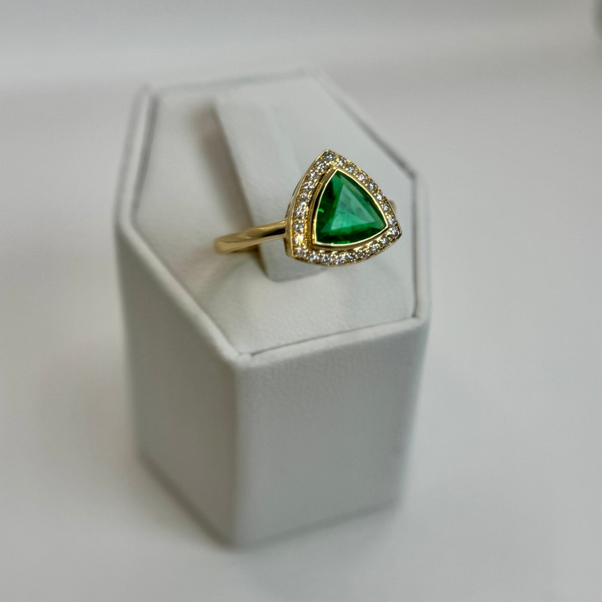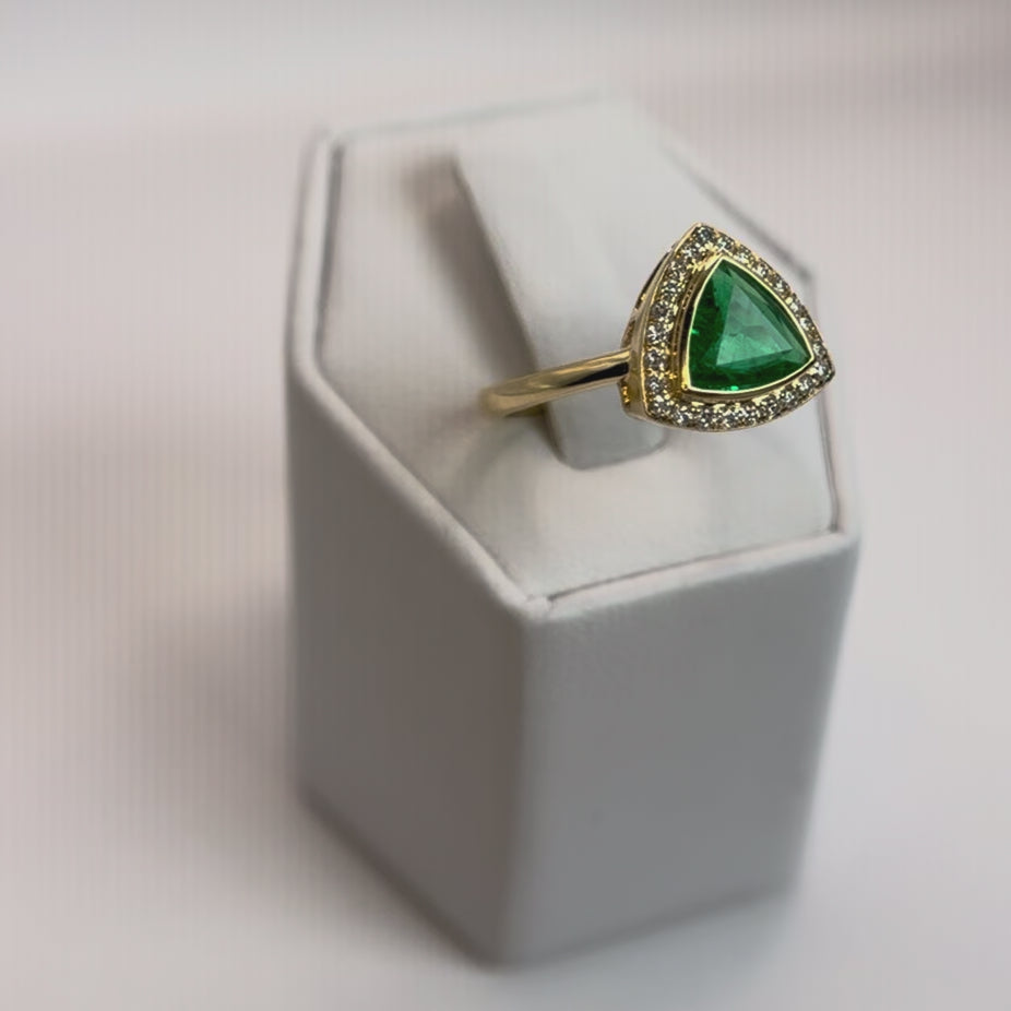 18K Natural Trillion Cut Emerald & Diamond Ring