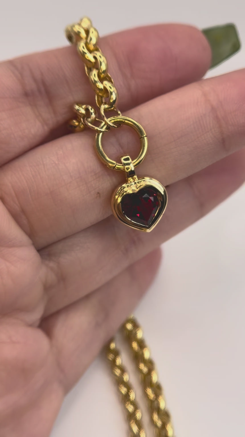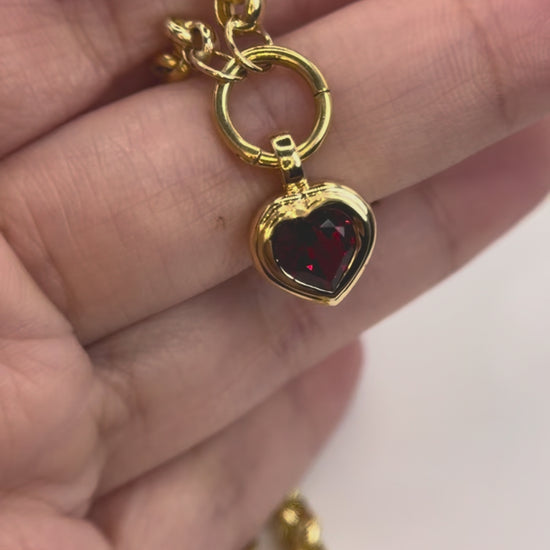 Found Gaud! A brand new heart-shaped red garnet takes center stage. Set in luminous 18K gold, this piece pairs bold warmth with delicate sparkle, perfect clipped onto your favorite chain.