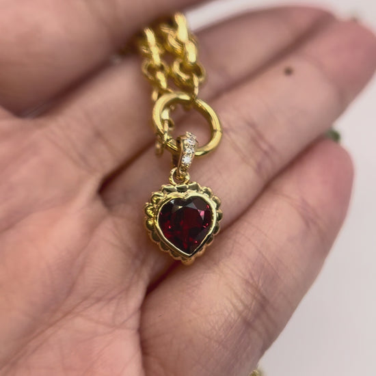 18K Natural Garnet & Diamond Heart Pendant